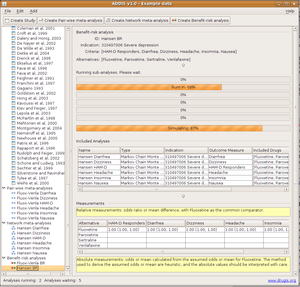 We are happy to announce the release of ADDIS (Aggregate Data Drug Information System) version 1.0. ADDIS offers meta-analysis (since ADDIS v0.4), network meta-analysis (since ADDIS v0.8) and multi-criteria benefit-risk analysis of alternative treatment options (since ADDIS v0.10).