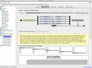 - Network meta-analysis result summaries can be saved in the ADDIS data file (includes relative effects, rank probabilities, variance parameters, inconsistency factors, node-split results, and convergence diagnostics).