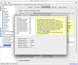 - The network meta-analysis simulation can be re-run if necessary, e.g. to verify saved results or to obtain density and convergence plots.