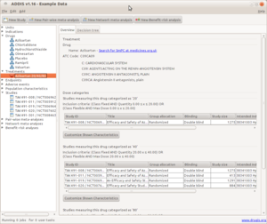 We are happy to announce the release of ADDIS (Aggregate Data Drug Information System) version 1.16. This release focuses on the stratification of treatments by dose and dosing type so study arms can be included in the network meta analyses and pairwise meta analyses based on dosage. New features include:
